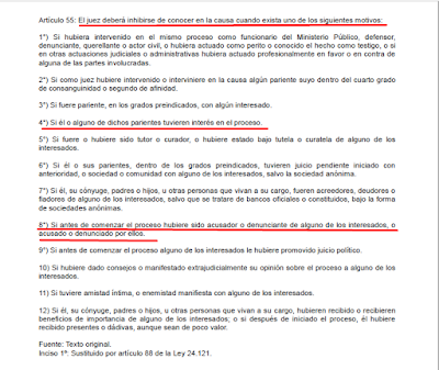 8. y es una conducta que cuando la hace un juez, es causal de remoción de ese juez en esa causa. ¿Por qué? Porque la ley ordena que el juez no puede tener un especial interés en las causas que juzga Y que debe respetar la asignación por sorteo.
